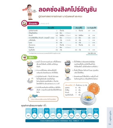 *ราคาวัตถุดิบ คิดจากราคาประมาณการจากตลาดค้าปลีกทั่วไป พฤศจิกายน 2562 รวม 404 บาท