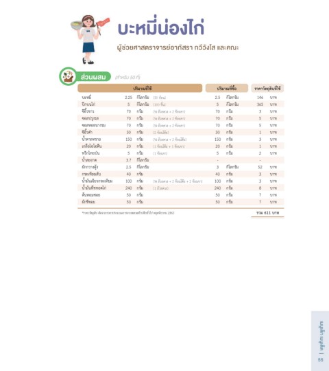 *ราคาวัตถุดิบ คิดจากราคาประมาณการจากตลาดค้าปลีกทั่วไป พฤศจิกายน 2562 รวม 611 บาท
